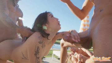 Connie Perignon knows why she came to Ricky’s Resort, and that is to straight up fuck! A spit roast in the pool was on the list with Isiah Maxwell and Ricky followed by a second one with Ricky and Jay Hefner. After a breather, Lil D and Connie took a fucking ride on the golf cart then everyone went to a rooftop orgy and Dwayne Foxxx and Damian Daysky joined Connie. Damon Dice, Mazee, and Lil D put the action in at the firepit orgy leaving Connie feeling satisfied with her Fuck-cation! - Episode 10